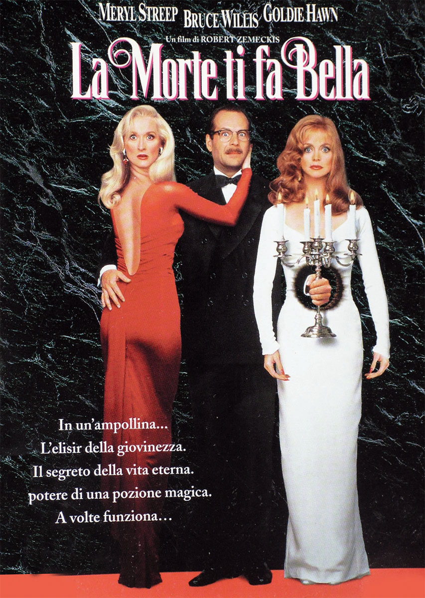 La morte ti fa bella (Death Becomes Her) è un film del 1992 diretto da Robert Zemeckis, sicuramente un cast d’eccezione per l’anno in cui fu girato. Black humor e fantasy per 99 minuti di spensieratezza.